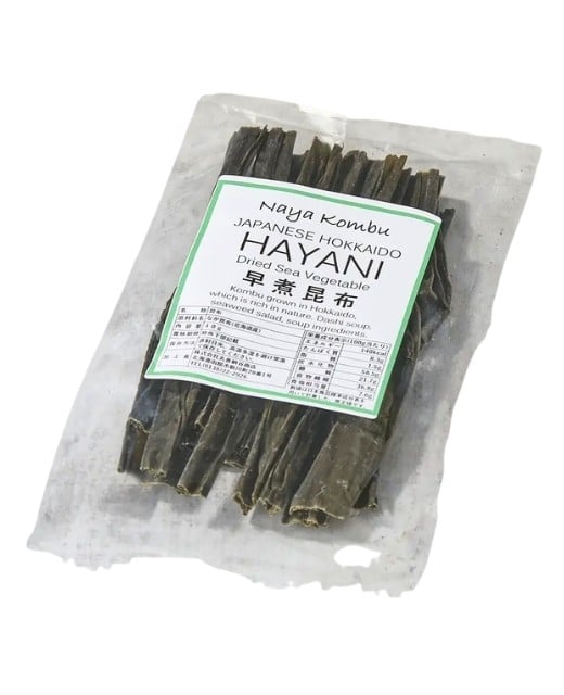 Mettre 1,5 litres d'eau froide et 20 g de kombu séché dans une casserole. Laisser tremper une nuit. Porter à ébullition pendant environ 10 minutes. Le refroidir dans l'eau, puis coupez-le en morceaux et ajoutez-le aux salades et aux soupes.