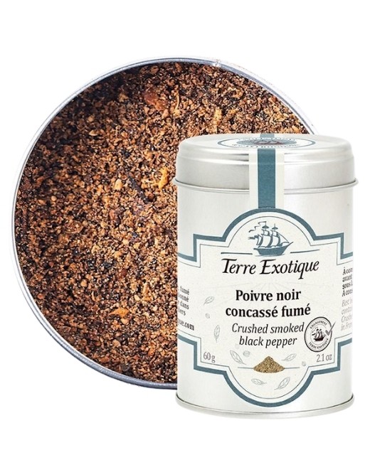 Découvrez le poivre noir concassé et fumé au bois de hêtre, idéal pour une utilisation quotidienne. Essayez-le avec un magret de canard, un pavé de saumon ou une pièce de bœuf grillée.