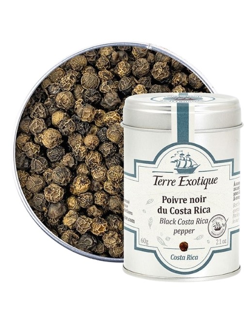 Le poivre noir du Costa Rica se distingue par un beau calibre et une couleur d’un noir soutenu. Il libère des arômes boisés et de champignon. Son piquant prononcé soutient sa puissance aromatique et sa longueur en bouche.