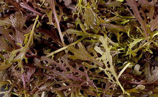 La pousse frisée de moutarde rouge est parfaite pour rehausser la saveurs des mélanges de jeunes pousses et pour une belle présentation.