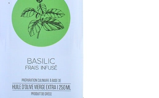 Huile d'olive vierge extra 60%, basilic infusé dans l'huile d'olive (40%).