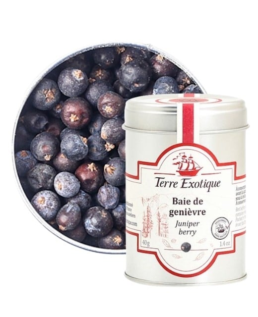Au goût acidulé et résineux, la baie de genièvre parfume les cuisines du Nord. Cette baie pleine de vertus est parfaite pour les plats mijotés, les viandes de caractère, la choucroute, le poulet à la bière ou les gibiers