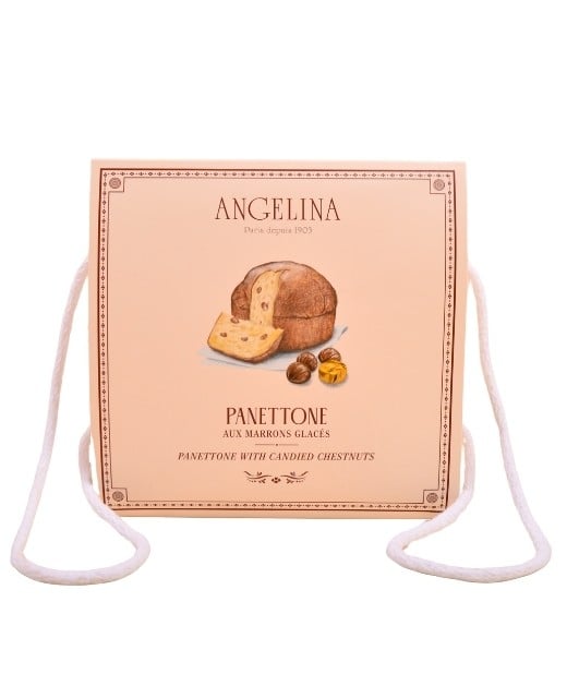 Inspiré par l’emblématique Mont-Blanc, la pâtisserie signature de la Maison Angelina, ce panettone est une délicieuse variante de la célèbre spécialité italienne, avec de véritables morceaux de marrons glacés !